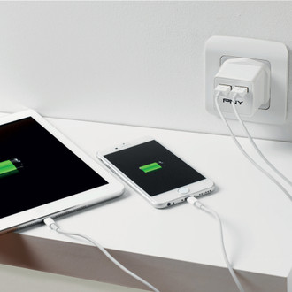 PNY's Fast Dual Charger is the perfect tool for charging two devices at the same time. As we often have one smartphone or one smartphone and one tablet, being able to charge quickly both devices from one outlet with the safe Fast Dual Charger from PNY is essential. With its 2.41 and 1A outputs, with a total possible 3.4A or 17W output, it will charge most devices with speed while being easy to take in a bag on a weekend or business trip.