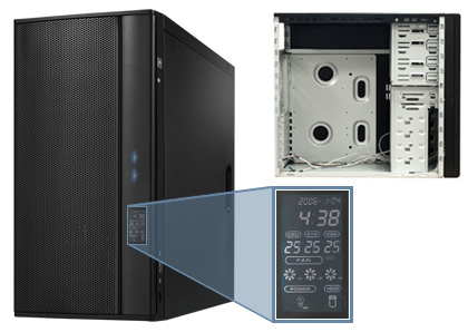 No huge fans, no lightshow, just a delicate and stylish design. The clean meshed door and smooth lighting show an incognito warrior, waiting to be unleashed. This ATX-sized midi tower includes an LCD display for fan speeds, system temperatures and date & time information