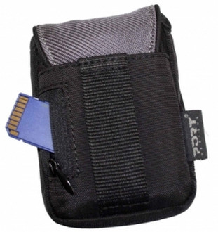 - Compact camera case; - Flap protection; - Compact; - Safe fixed strap for belt; - Memory card pocket.