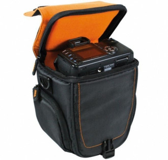 Buckle closing for «1 hand» use - Top zippers protected against rain + flap protection - Fixed strap for belt - Metal buckle for shoulder strap - PVC bottom - Micro-fiber cleaning fabric inside
