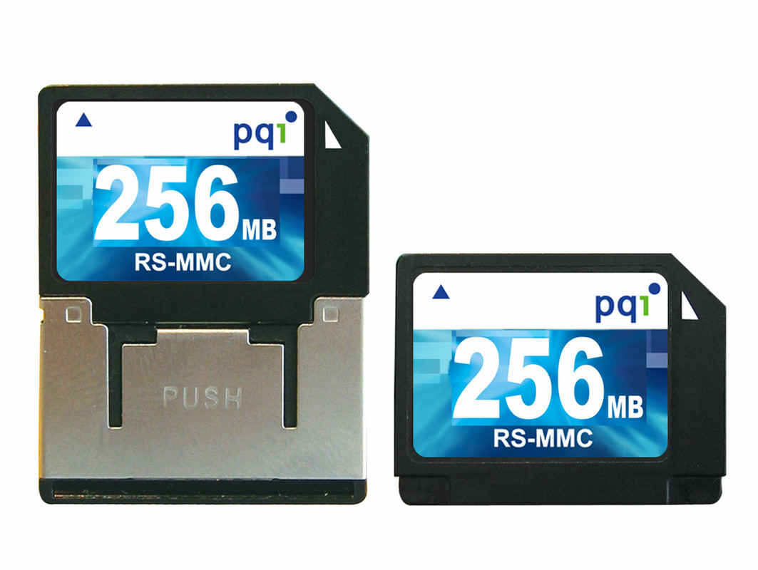 RS-MMC is an extension of the MultiMediaCard but in a smaller size to meet the growing demand for small, portable digital devices. Bundled with a MMC adapter, PQI RS-MMC cards are ideal for digital devices designed to use MMC, RS-MMC or SD cards.