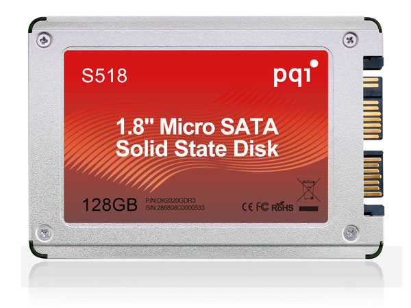 PQI's 1.8”microSATA SSD S518 utilizes micro SATA interface with a maximum read speed of 150MB/sec and write speed of 90MB/sec. S518 is shock proof and consumes minimum power, providing users with a peace of mind and maximum battery usage. Available in 32GB ~ 128GB, it is the perfect hard drive replacement if speed and power consumption are your main concerns.