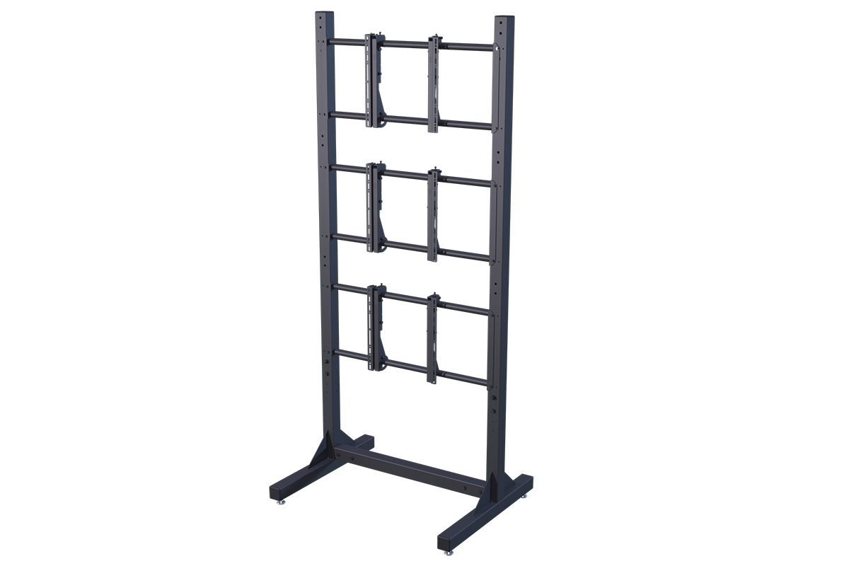 The one-by-three video wall stand is a unique configuration for digital signage displays. Designed for 46 in. and 55 in. flat-panels, the video wall stand includes adjustment bolts and brackets to ensure a level stand and seamlessly aligned displays. Quick setup with standard size bolts as well as easy tear down for simplified shipping, handling and moving.