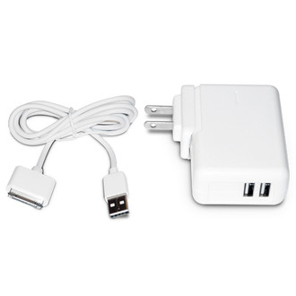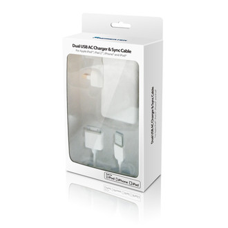 Dual USB AC Charger & Sync Cable for Apple iPod, iPhone, iPad and iPad 2