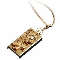 Necklace Flash drive is designed after the last tendencies of jewelry fashion. A small and elegant gold plated pendent with rose will harmonize with different clothes styles, so you can take you flash drive wherever you go. The creative decision to combine flash drive with pendent was made with the women in the mind who keep loosing small flash drives in their bags. Her secret information will be at her fingertips at a moment’s notice. Don’t forget that this jewelry first of all is a hi-speed USB Flash Drive that enables its owner to store information. Documents, photos, video files, maps, programs… All information that a woman needs is available now in jewelry design.