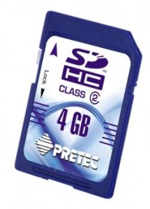 Pretec SDHC SecureDigital Card - 4GB. Capacity: 4 GB, Flash card type: SDHC, Write speed: 6 MB/s. Input voltage: 2.7 - 3.6. Weight: 2 g. Dimensions (WxDxH): 24 x 32 x 2.1 mm