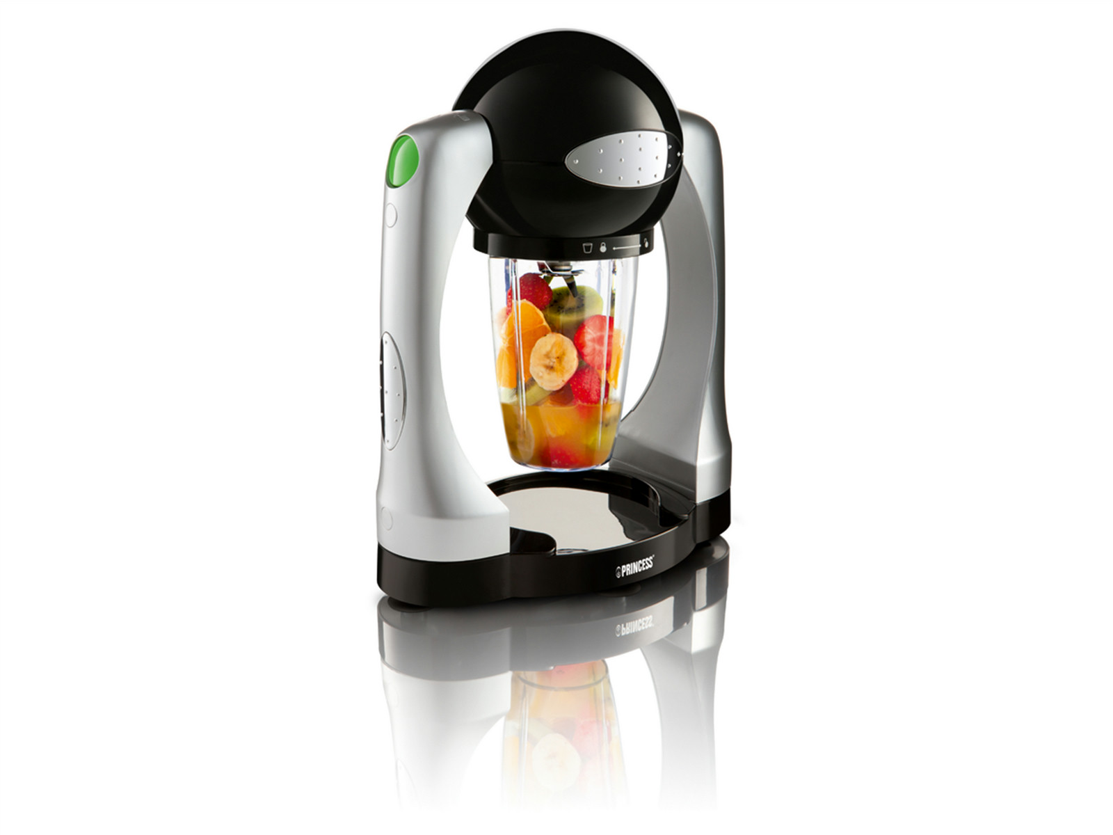 A very practical and innovative smoothie maker. Makes delicious and healthy smoothies in seconds! The smoothie maker starts automatically when the jug is rotated upwards 180 degrees.