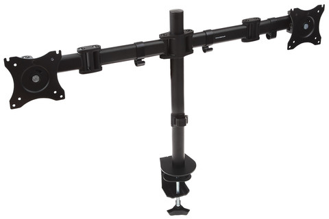 This double arm desk mount is designed for two computer monitors, LCD and/or LED televisions. With double extension functions on both arms it allows extra flexibility when deciding on the positioning of both screens. The bracket is attached by a screw to a table surface with a thickness of 1 to 9 centimetres (0.4 to 3.5 inches). Rubber supports protect the furniture surfaces from possible physical damage during the mounting of the bracket.