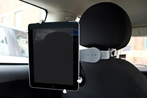 No tools are needed for installation, the sturdy aluminium clamp tightens securely onto your front headrest and then the tablet is simply fixed into place. The clamp will fit around any headrest bars between 12-16mm.