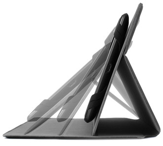 Made from high quality faux-leather, this universal tablet case has a textured finish for easy grip and multiple-viewing angles for desktop video viewing.
