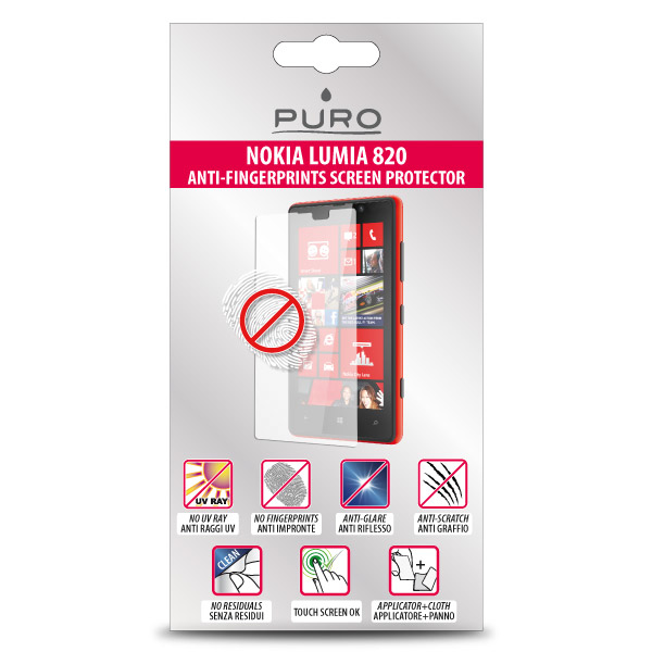 The ANTI-FINGERPRINTS Nokia Lumia 820 Screen Protector save the screen of the device from scratches and fingerprints without reducing the sensitivity to the touch screen controls. For the right application of the Nokia Lumia 820 screen protector, is necessary to clean the surface of the device with the cleaning cloth without chemical agents and place the film using the applicator to push out or remove any air bubbles.