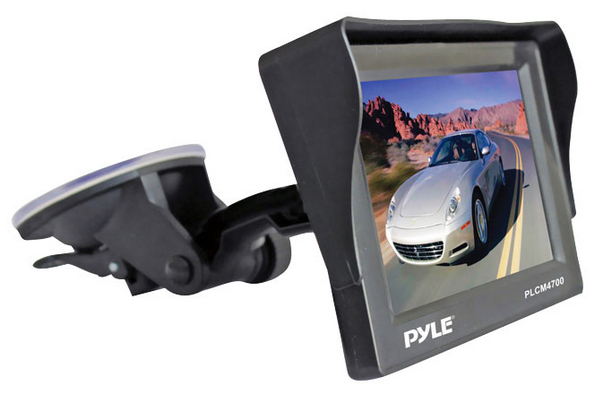 Check out the PLCM4700, an awesome video monitor/backup camera kit from Pyle. This kit includes a waterproof, low-light-vision equipped, license plate mount color rear view camera and suction cup mount screen for the inside of your car. The camera outputs crystal clear video over an RCA jack — even in relatively low light. The 4.7' LCD monitor detects when you back up and shows the camera on screen. Perfect for backing into tight spots or moving in reverse when visibility is limited - it's like having an extra eye. It's also equipped with a distance-line mode to show you how far away you are from other objects in the camera's viewfinder. And with two video inputs, you can even use the monitor to watch DVDs or video from any other source that outputs composite video. Includes video and power cables, and instructions for mounting.