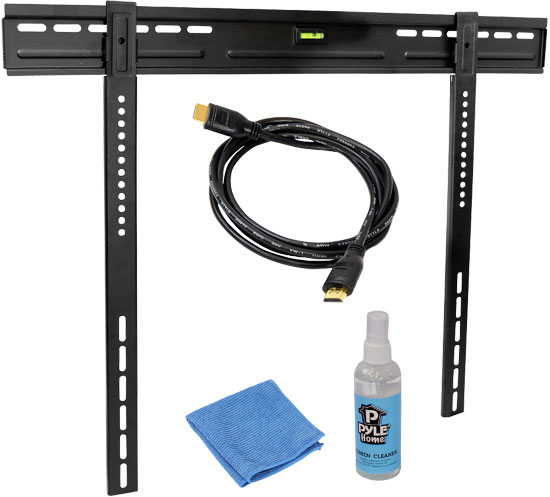 This HDTV video kit has everything you need to get started with your brand new flat-screen HDTV. Start with the wall-mount to transform your television into a piece of modern wall-art: it's compatible with all flat-panel TVs from 32" to 60" and fits VESA size 100x100 to 600x400, supporting televisions up to 125 lbs. This post-modern mount leaves your TV only 12.8mm from the wall. This kit also includes an HDMI cable. Use it to connect your new TV to a whole range of hi-def equipment, including your cable or satellite box, video game console, or a Blu-Ray player. Finally, this kit also includes a cleaning kit, with a solution and microfiber cloth that, with regular use, will keep your television looking as bright and shiny as on the day you got it.