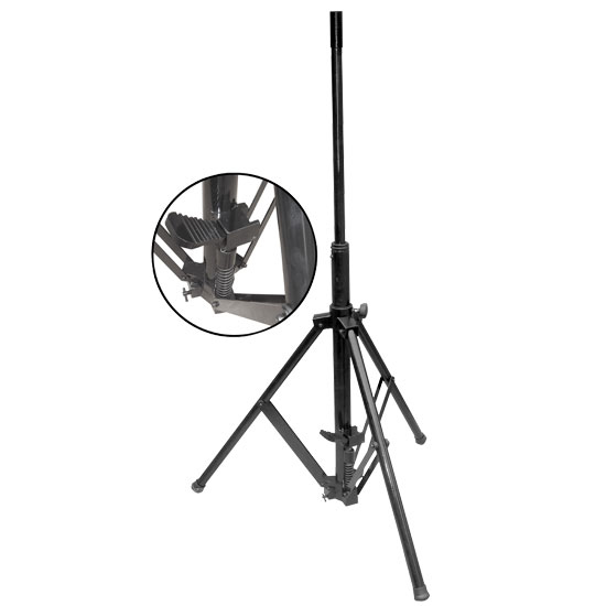 This heavy-duty tripod speaker stand is sturdy, strong, and reliable. It's constructed from strong, lightweight tubing, holds up to 350 lbs., and sets up from 3.6 to 6.6 feet. It easily winds up and down thanks to the foot pedal.
