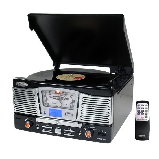 Retro Style Turntable With CD/Radio/USB/SD/MP3/WMA and Vinyl-to-MP3 Encoding (Black)