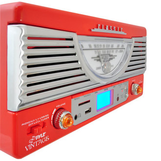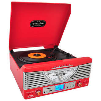 Retro-Style Turntable - Plays Radio, MP3s via USB & SD Memory with Vinyl-to-MP3 Encoding, Red