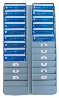 The 500-24 Employee Badge Rack keeps time cards, badges & other items neatly organized within hands reach. Install next to time clocks or in entry areas. Accommodates 24 standard sized cards & badges. Includes numbered labels for assigning card slots. Constructed of lightweight, durable light gray.