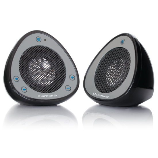 iharmonix Q-i-sound Stereo Bluetooth Speakers are compact and lightweight with true stereo sound for an optimal listening experience. Microphones are incorporated for crisp, clear phone communication.