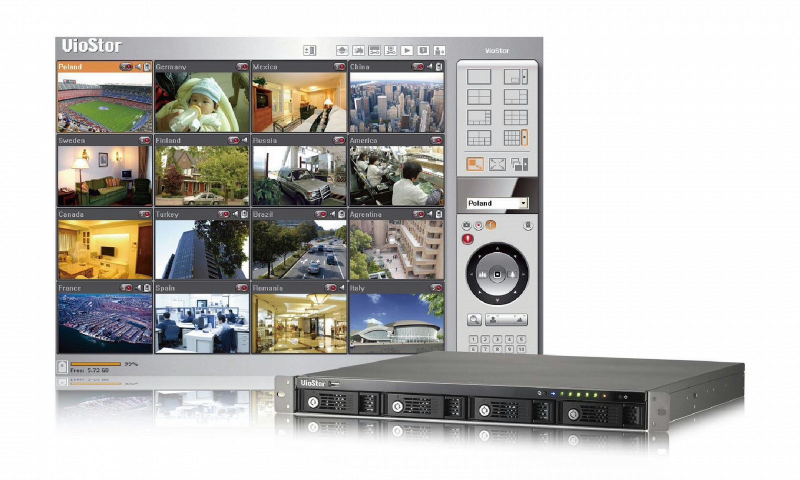 The VioStor NVR is a complete network surveillance solution which provides recording, real-time monitoring, and remote data access. It supports up to 16-channel megapixel recording in H.264, MxPEG, MPEG-4, or MJPEG video compression.Besides, the NVR supports diversified recording features and video search by intelligent video analytics, e.g. motion detection, missing object, foreign object, out of focus, and camera occlusion, etc. In real-time monitoring, you can select to view the channels (IP cameras) with different display modes or drag and drop to change the display order of the channels flexibly. The NVR also supports other intelligent features such as smart control of PTZ cameras, instant alarm alert, digital zoom, data search by date and time, timeline, and event. All the functions can be configured by the IE web browser.