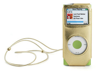 Hautes Coutures Gold case for iPod nano with gold metal necklace and belt clip