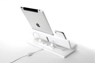 Show your gadgets some love! Converge is a docking station that shows off your electronics while they charge. Wires slip in easily, stay in place with the help of soft TPE grips, and stay out of sight.