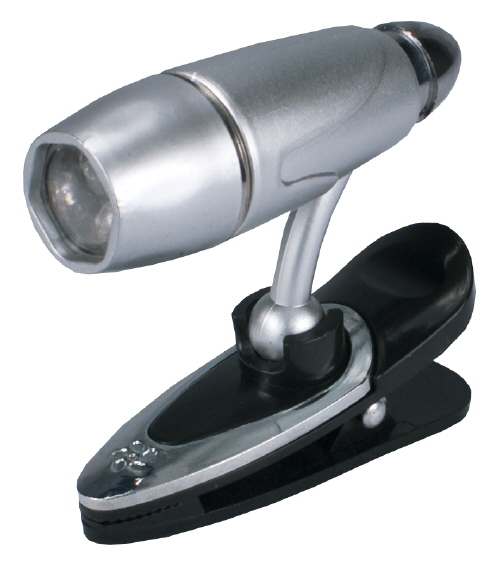 This LED clip light keeps your hands free! It can easily clips to books, laptops, visor, seat belt, handles, headrest or just about anything. Features 360-degree swivel ball joint, 3-LED lights, and On/Off push button switch. Durable and lightweight design makes it easy to carry anywhere. Batteries included.