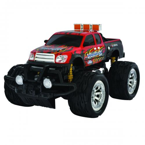 - 1/14 Scale Big Wheel RC Car with "try me" function (monster truck style LED lighted wheels, red)