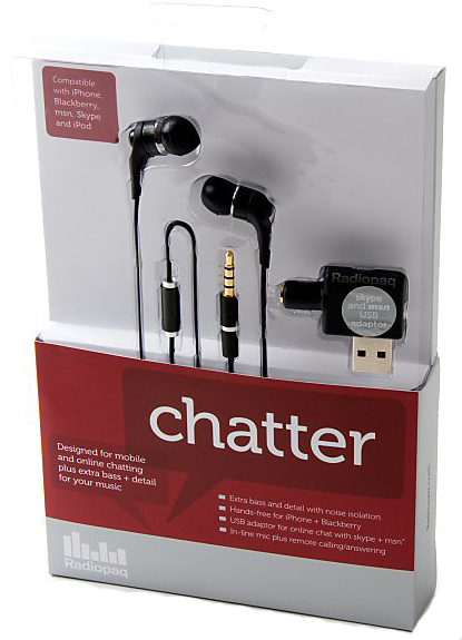 Chatter earphones include a unique 3.5mm jack to USB sound & speech adaptor. Simply plug in and talk when using MSN or Skype.