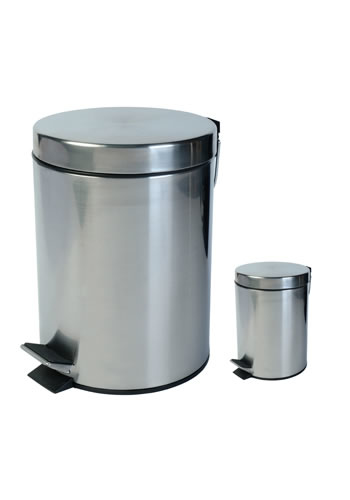 10.5 gallons and a 1.2 gallons stainless steel trash bin. Get two of these elegant stainless steel trash bins at one low price. This will allow you to have one for the kitchen and one for the bathroom or any room in your home you desire. It also has a plastic liner with a handle that makes it easy to empty and easy to clean.