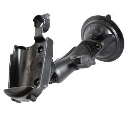 The RAM-B-166-GA20U, twist lock suction cup mount consists of a 3.25" suction cup locking base, socket system and custom high strength composite cradle for the Garmin Rino. The mount is designed with a RAM 1" diameter patented rubber ball and socket system that has adjustment points at both ends of the double socket arm; this allowing for almost infinite adjustment and perfect viewing angles. Simply attach the suction cup base to the windshield of your vehicle for an easy and safe way to view your handheld device in your vehicle. High quality materials ensure your electronic device is safe, secure, and within easy reach. RAM’s patented design also dampens shock and vibration helping to extend the life of your mobile device.