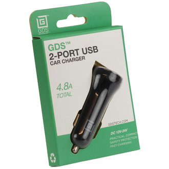 The GDS™ 2-Port USB Car Charger will charge two devices at once, including the latest generation Apple and Samsung devices, while on the road. The low-profile design fits easily in your dash without getting in the way of other controls within the vehicle. The indicator light lets you know that the charger is fully plugged in and that your device is charging. The 2.4A output current assures your devices will charge quickly and efficiently.