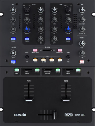 The Sixty-One is a plug-and-play package supporting two-deck digital vinyl simulation, software effects and all the record and playback channels you need. The Sixty-One Mixer supports both analog and Digital Vinyl Simulation (DVS) playback. Serato DJ software and manual are included, and the mixer is also compatible with Serato Scratch Live. It includes Rane's ASIO and Core Audio drivers for use with other popular DJ and DAW programs. Two Serato Control Vinyl Records and two Serato Control CDs are included.