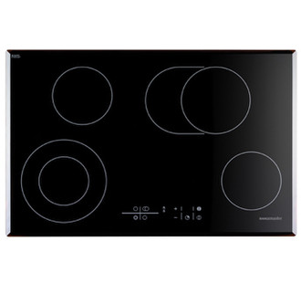 - 77cm wide black ceramic glass with a bevelled edge.