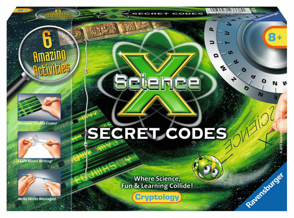Where Science, Fun and Learning Collide! More product information : Pssst_ Can you keep a secret? Learn to send secret messages six different ways with this cryptic kit from Ravensburger! Use a scytale to decipher disc messages like they did in ancient Greece, write backwards in a mirror, and more - Secret Codes contains everything you need to write and decode secret messages. _ Instructions, supplies and history about the ancient origins of 6 amazing secret code activities! _ Includes the following materials: o Sheet of paper, 2 straws, and pencil to create your own scytale messages o 2 decoding discs and brass fastener for writing encoded messages o Mirror for mirror writing o String and knot holder for knotted codes o 2 code templates for code cracker activity o Stick of wax to write invisible messages _ For ages 8+ Barcode: 4005556181766 Contents: 1 Knot Holder, 1 Packet of String, 2 Brass Fasteners, 2 Decoding Discs, 1 Stick of Wax, 1 Sheet of Paper, 2 Code Templates, 1 Pencil, 1 Mirror, 2 Straws, Detailed Instruction Manual