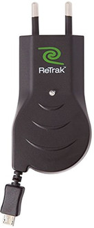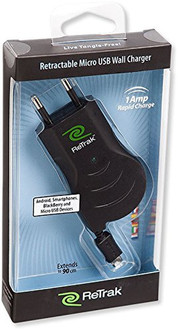 Retractable Micro-USB 2.0 Wall Charger, 0.9 m - Black