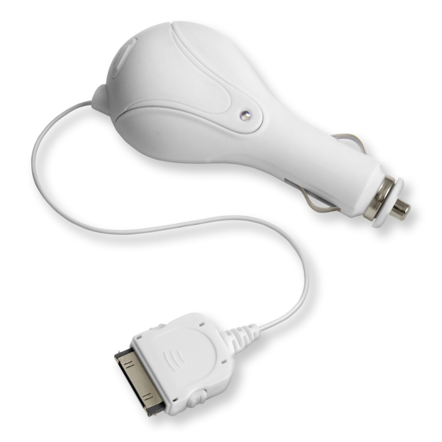 The ReTrak retractable car charger is perfect for people on the go. The unique design stores the cable inside the charger until you’re ready to plug in. Just pull the connector and the cable expands to the length you need. When done, simply press the auto-retract button and the cable rewinds.