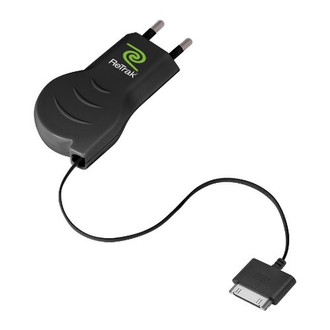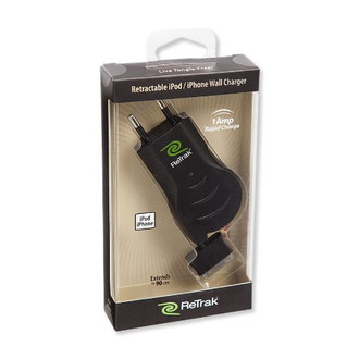 Retractable Apple 30-pin Wall Charger for Apple iPhone/iPod, 0.9 m - Black