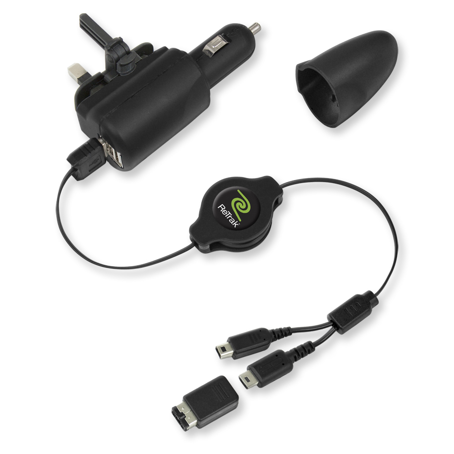The ReTrak retractable combo charger and sync is perfect for people on the go. The unique design allows you to charge your Nintendo DS in the car, at home or at the office. With the USB 2.0 connection you can also charge AND sync with any computer. The retractable cable is great for travel yet easily expands to the desired length without the clutter of unwanted cable.