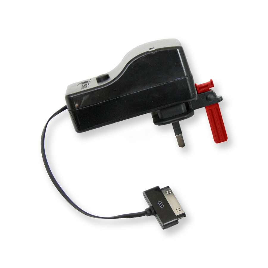 The ReTrak retractable wall charger has a unique design that stores the cable inside the charger until you’re ready to plug in. Just pull the connector and the cable expands to the length you need. When done, simply press the auto-retract button and the cable rewinds. No more wires trailing all over your house or office !