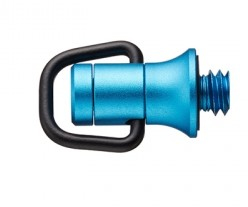 Blue attachment for strap designed for Ricoh Theta.