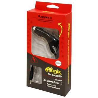 Ritmix RM-002RMD. Charger type: Auto, Charger compatibility: E-book reader, Tablet, Power source type: Cigar lighter. Colour of product: Black. Output voltage: 5 V, Port 1 output current: 2 A