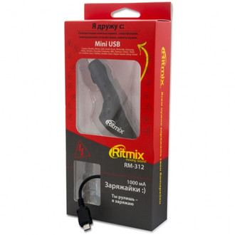 Ritmix RM-312. Charger type: Auto, Charger compatibility: Universal, Power source type: Cigar lighter. Colour of product: Black. Input voltage: 12 / 24, Output voltage: 5 V, Output current: 1000 mA