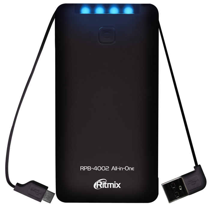 Ritmix RPB-4002. Colour of product: Black, Charger compatibility: Universal. Battery technology: Lithium Polymer (LiPo), Battery capacity: 4000 mAh, Charging source: DC. Width: 114 mm, Depth: 57 mm, Height: 15 mm