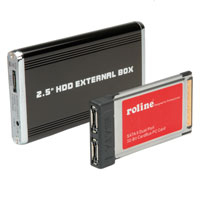 ROLINE External 2.5" HDD-Box, Aluminium, eS-ATA, Set. Storage drive size: 2.5", Supported storage drive interfaces: Serial ATA. Interface: S-ATA. Colour of product: Black, Silver, Material: Aluminium. Compatible operating systems: Windows 98 / ME / 2000 / XP. Dimensions (WxDxH): 136 x 80 x 15 mm, Power requirements: 5V