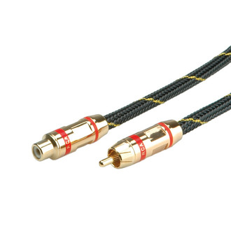 ROLINE GOLD Cinch Cable, simplex Male - Female<br /><ul><li>Plugs Male / Female</li><li>The plugs are gold coated to enhance their contact durability</li><li>Marking: RED</li><li>Nylon-reinforced outer material for a better stability</li><li>Color: Black / Gold</li></ul>.