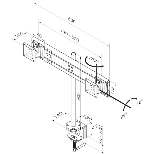 LCD Multi-Monitor Mount, 2x, Desk Clamp