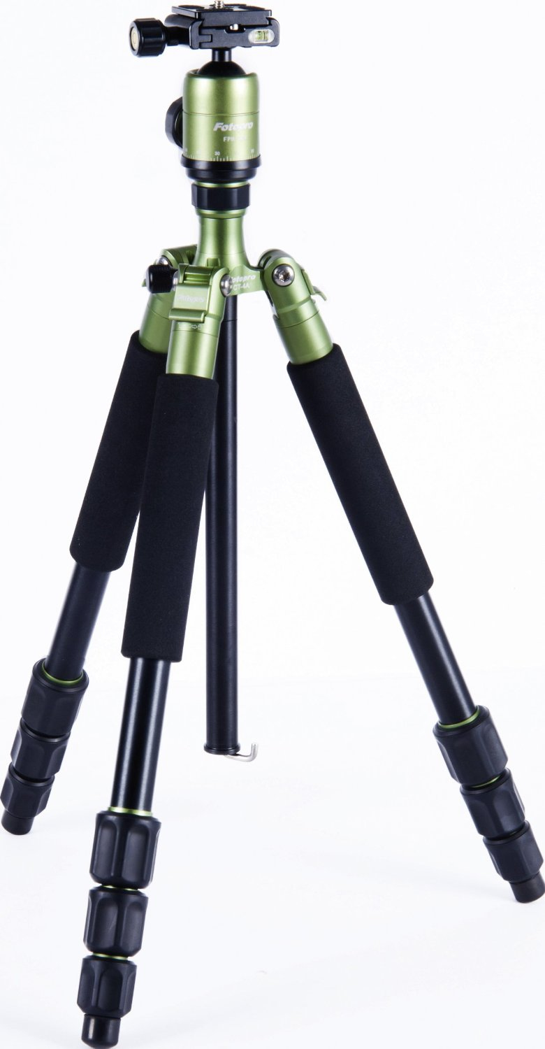 Aluminium, max. load 8 kg, 157 cm max. height, Green Light aluminium build, 3D ball head for professional use, with three-angle adjustment and a separate centre pillar with two segments; patented, semi-automatic tripod angled head, double head for locking the central pole, non-slip foam handle on the tripod legs against the cold and for secure grip, with concealed hooks.