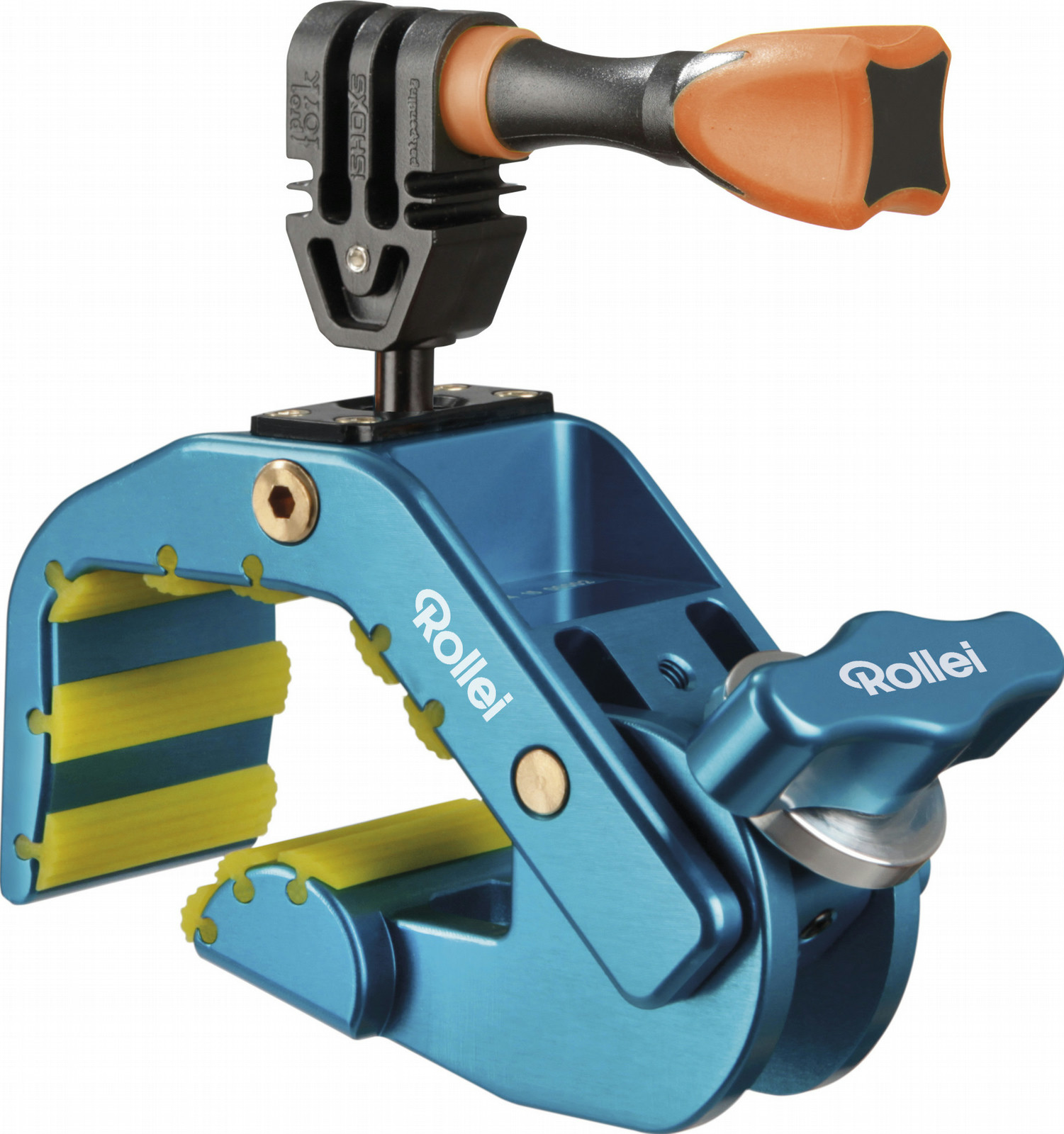 The revolutionary universal design of this camera mount makes it suitable for use with any existing action cam, GoPro or otherwise, whilst a 360-degree ball head system (similar to the type employed in larger-scale video tripods) offers the kind of precise alignment that allows for images to be captured from any angle one could possibly desire. The Rollei Pro Shark Mount is available in black, red, orange and blue.