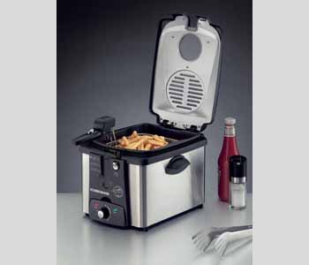 With Rommelsbacher’s Stainless Steel Deep-Fryer your fried food will turn out palatable and crisp. The removable, non-stick frying container is made of aluminium die casting. Due to this feature it stores the heat while balancing fluctuations of temperature as the cold food is immersed into the frying oil. Therefore, fried foods are prevented from becoming saturated by the oil. The flip-top cover with its inspection window is detachable. Both hands are free when handling the food to be fried. A permanent filter provides for fat and smell to be reduced to a minimum. Condensed water is drained off into a condensate collection basin using a groove integrated in the insulation ring, which is quite convenient. Cleaning the deep-fryer is most easy, as it is completely take-apart as well as dishwasher-proof. The basket can even be lifted and lowered while having the cover closed. Thanks to its mature design, the surface temperatures of the casing are reasonably negligible. Perfect design meets ease of use and functionality.