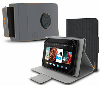 Universal Folio Case Cover Stand for 7 inch Tablet with Orb Strap Holder - Canvas Gray